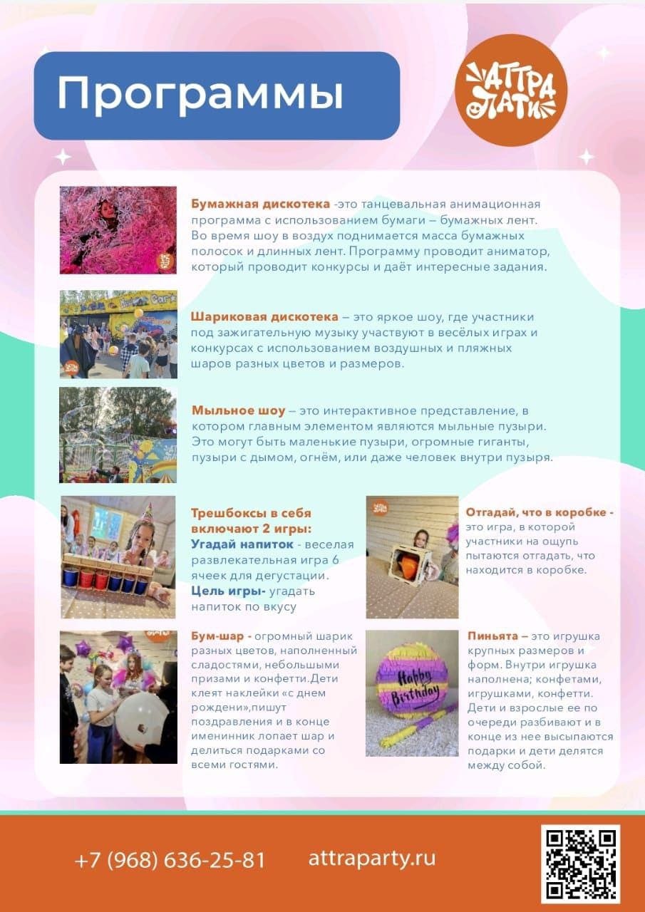 Мы предлагаем множество уникальных программ, которые подойдут для любого настроения и возраста!